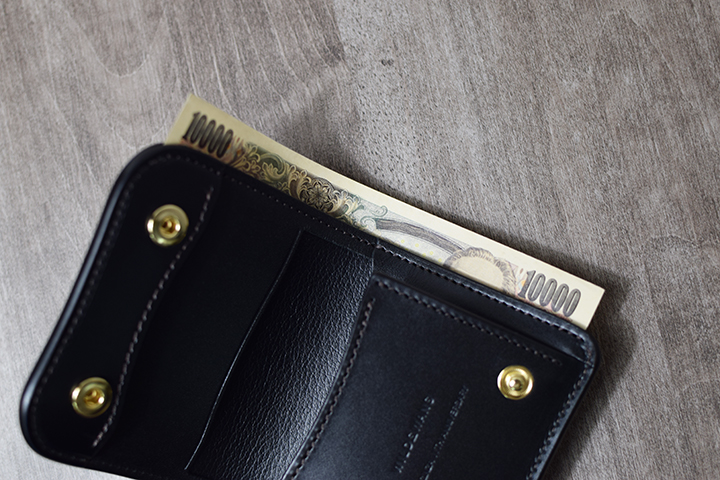 携帯性を重視した設計により一番大きな日本紙幣の一万円札がギリギリ入る位の札室です。