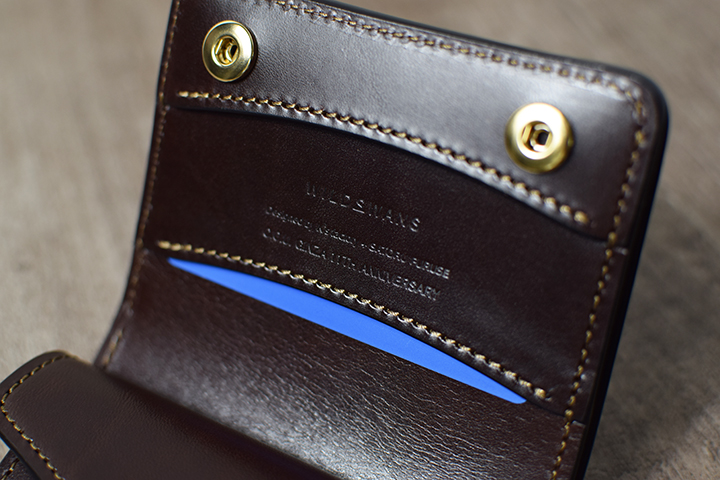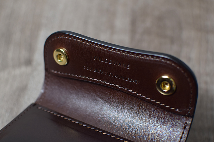ちなみにkf-003のホックは、他のWILDSWANS製品で使われているホックと異なり、ホック表面の盛り上がりが緩やかで使用しても革の表面にアタリが出にくいホックを採用しています。