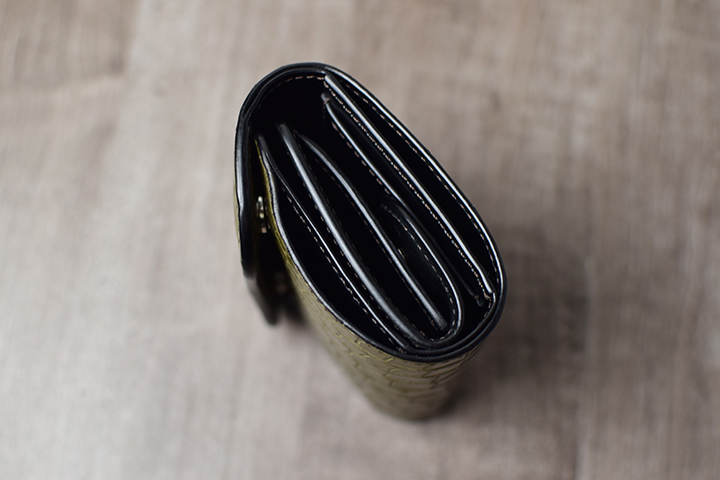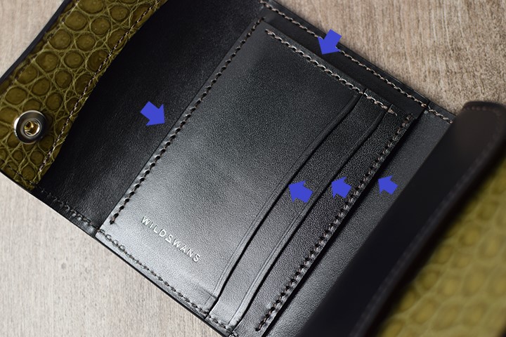 WAVEの内装も全て革張りのため、お使い始めはカードの出し入れに少々硬さを感じるかもしれませんが、使用することで革が馴染みスムーズになります。