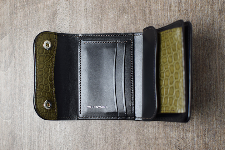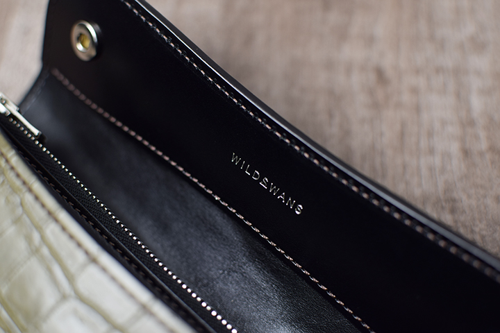 内装にはWILDSWANSではお馴染みの堅牢度の高いベルギー牛革・サドルプルアップのブラックを合わせて製作しています。