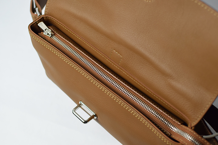 フラップを開けるとファスナーが付いたメイン収納部が現れます。
