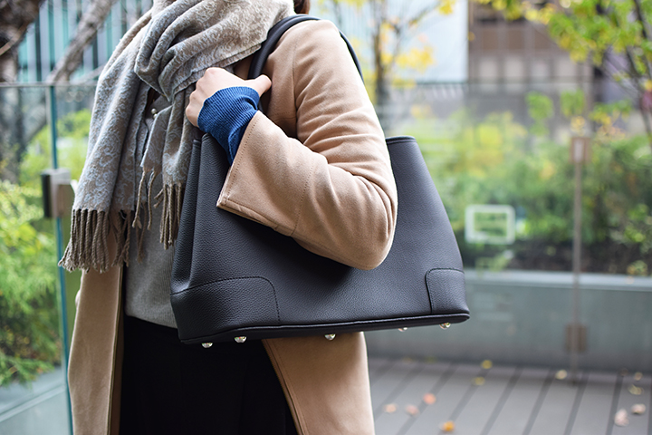 ハンドルの高さは17㎝で手提げのみならず肩掛けにも対応した絶妙な設定です。