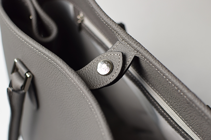 収納部の入り口にはホックを設けており電車の車内などで中身が見えにくいような工夫を凝らしています。