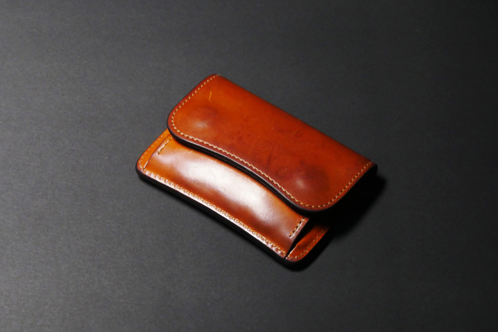 こちらはスタッフが約2年間使用した、コインケースTONGUE(タング)ロンドンカラーのエイジングサンプルでございます。