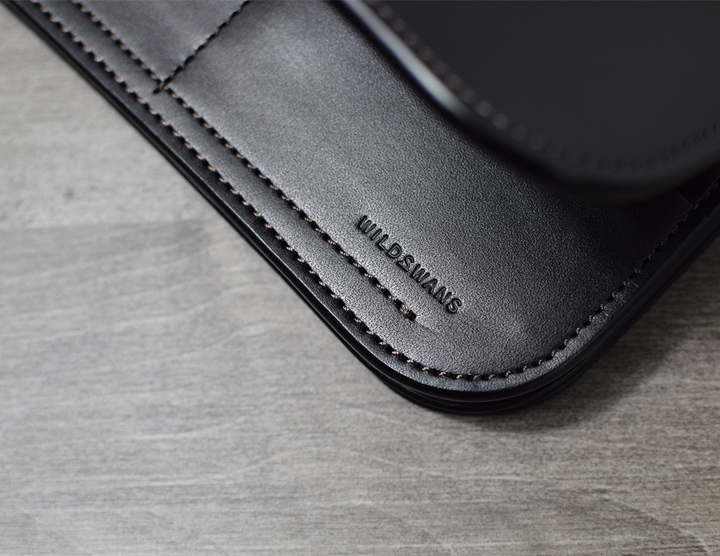 本体を開くと右下にWILDSWANSのロゴが刻印されています。