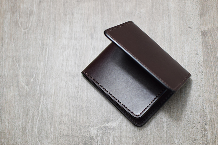 全面にコシの強い肉厚のイングリッシュブライドルを使用しているため、お使い始めは自然と本体が開いてしまいますが、使用していくと少しずつ革が馴染み本体が閉じるようになります。
