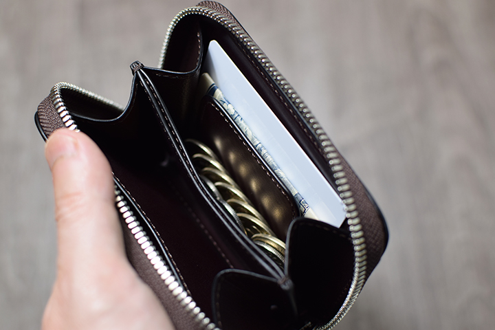 内装を開いた際に紙幣が見えてしまうことに抵抗がある方は、紙幣を二つ折りにして収納することも可能です。