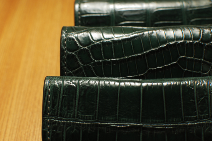 クロコダイル本来の特長を生かし、WILDSWANSのクロコダイル製品の表情は実に様々です。