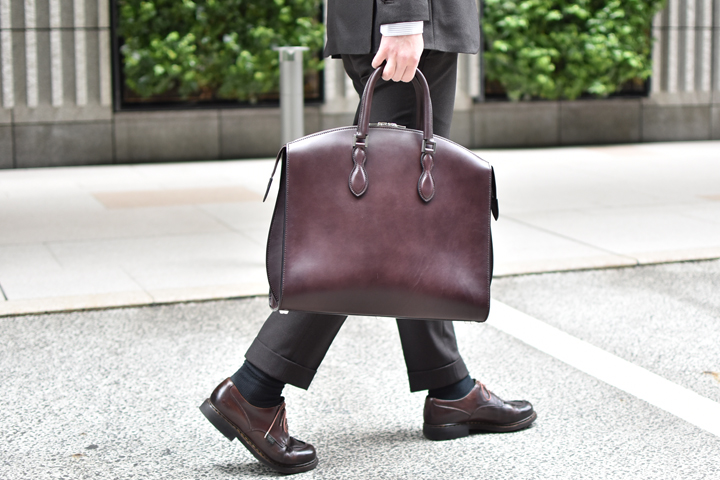 硬質でハリのある皮革によって形作られる優雅なフォルムとクラシカルな雰囲気が印象的で、ビジネスシーンに溶け込みつつも、しっかりと存在感を残すアイテムとして人気のモデルです。