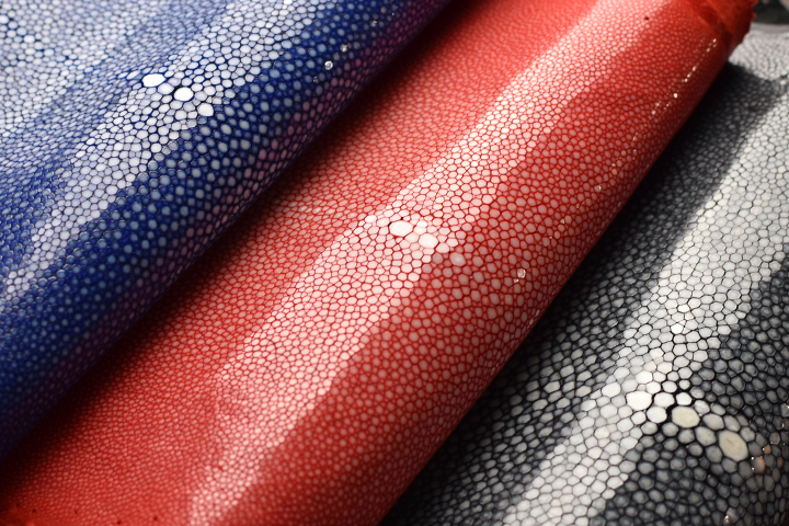 特にガルーシャの模様は1点ごとに楯鱗のサイズや形、染料の浸透具合による色味の変化などの差があり、非常にバリエーションが豊かです。