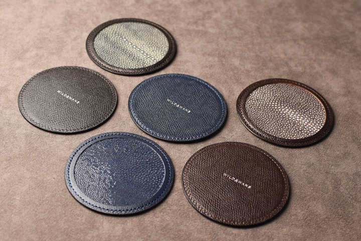 コースターには様々な素材が使用されておりますが、皮革を素材としたものは珍しく、また非常に贅沢なアイテムでもあります。