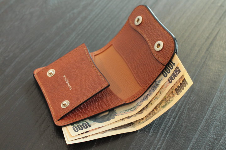 また、カードだけでなく紙幣も3つ折りないし4つ折りにしていただくとこの舌の裏側に収納することも可能です。