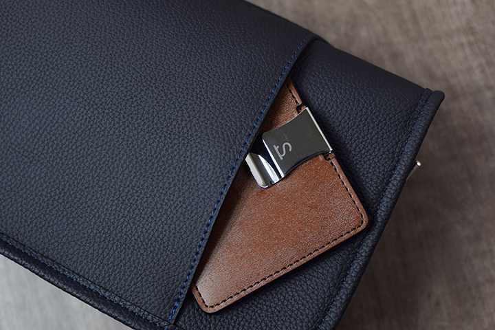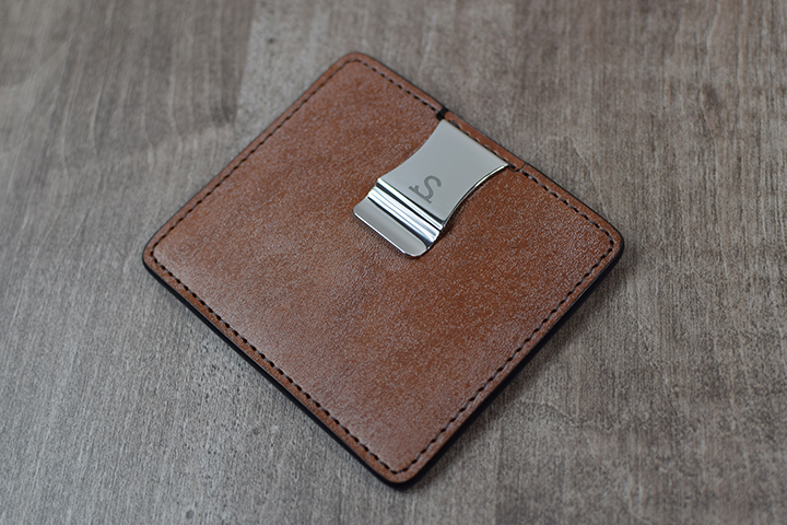 続いてMINIMALの仕様についてご説明させて頂きます。ステンレス製のオリジナルクリップが付属された面が本体の表となります。このためこの面のステッチが上糸となります。
