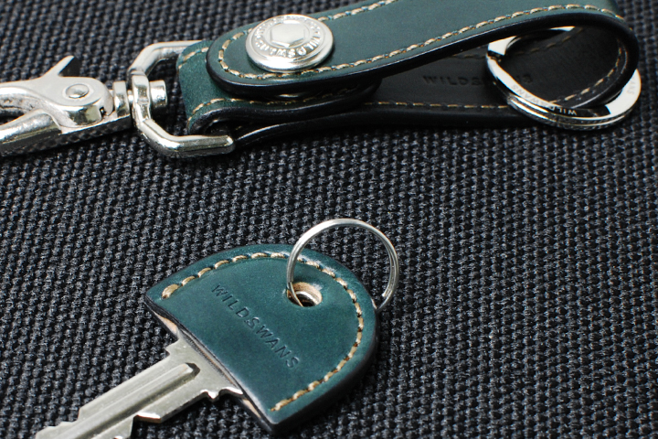 キーキャップ付きのキーホルダー、BRANCHです。 小さくても精密な縫製や磨き上げられたコバなどにより、WILDSWANSらしいアイテムに仕上げられています。