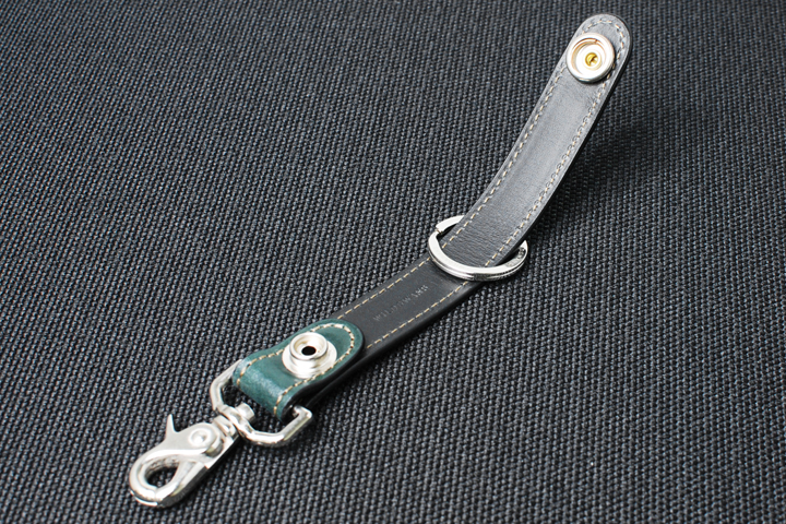シンプルなだけに汎用性が高く使用方法は様々ですが、通常は本体付属の2重リングに鍵などを取り付け、先端のレバーナスカン金具をベルトループやバッグのハンドルなどに接続します。