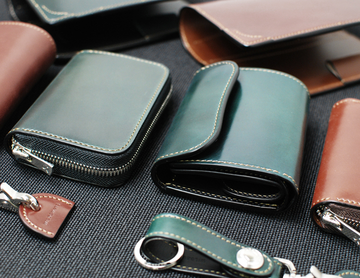 透明感を増しながら色味が深まっていくエイジングも魅力で、コードバン同様に表情の変化をお愉しみ頂きたい素材です。