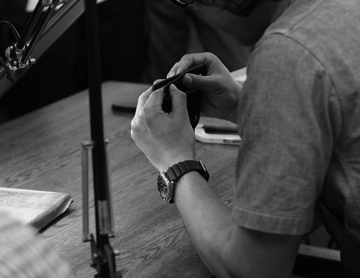 WILDSWANSのアトリエ見学では日頃なかなか見ることができない製作前の様々な種類の大きな革や、WILDSWANS製品の製作過程、職人たちの熟練の技まで余すところなくご覧頂けます。