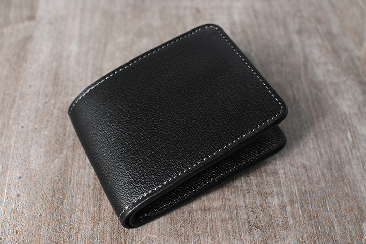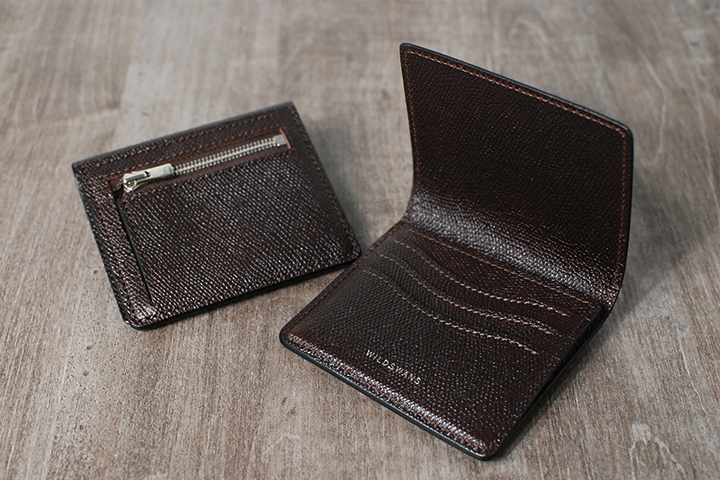 ゴートシリーズの最後は、WILDSWANSのラインナップの中でも最初期から存在するWINGSですが、ゴートを外装に使用することで、ドレススタイルによりマッチした定番の二つ折り財布になりました。カラーはブラックのみのご用意となります。
