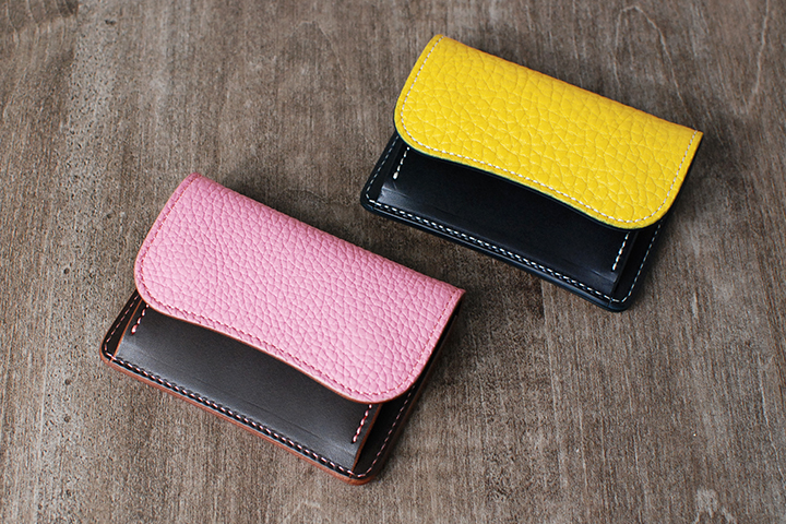 イタリア・ボナウド社が製造するゴート(山羊革)、“MOVIE PALMELLATO”を外装に用いた超小型コインウォレット・CLAMです。こちらはブラックとチョコ、2色のご用意となります。