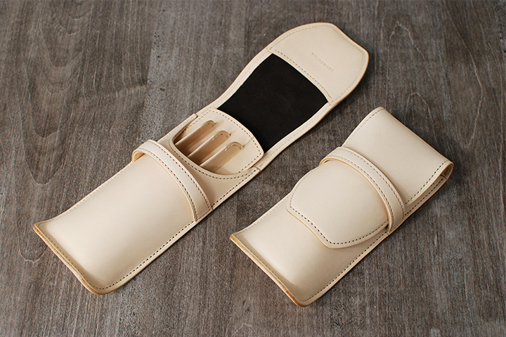 外装のスペックは先にご紹介させて頂いたNew-Peek-A-Boo3と全く同じ仕様ですが、内装のペンスリーブが4本挿しの仕様となります。こちらのペンスリーブは着脱式のため、単体のペントレーとしてもご使用頂けます。カラーはナチュラルのみとなります。