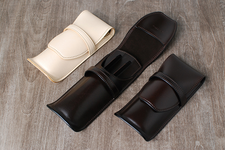 三本挿しのペンケースです。随所にWILDSWANSらしいこだわりの仕様が詰まったペンケースです。モンブランの149やペリカンの1000番台など太軸のペンが3本収納可能です。 カラーはチョコとナチュラルの2色でご用意しております。