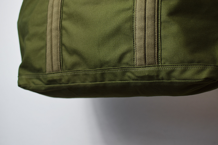 WILDSWANSでは初製作となるエコバッグのBRICKLANEは、これまで革をメイン素材としてWILDSWANSが製作してきた鞄のイメージとは全く異なる趣です。薄く軽いナイロン素材のエコバッグは携帯性には優れているものの、中には耐久性が低いものがあり、収納した牛乳パックの角と干渉した箇所が破損してしまうケースもあります。そこでWILDSWANSではエコバッグ本来の役割を再度見直しました。今回製作したBRICKLANEでは外装に丈夫な11号帆布を用いています。手触りが良い11号帆布は、見た目以上に軽量で優れた素材です。