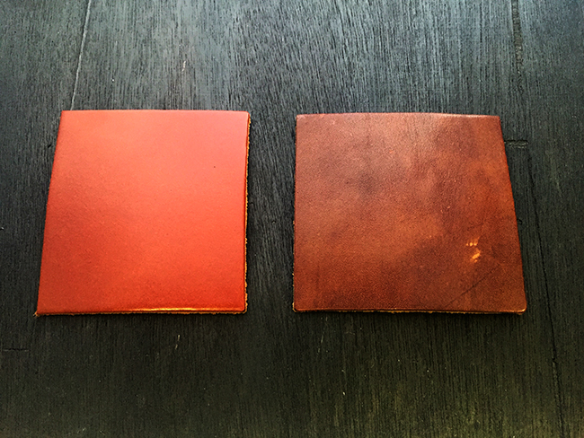 左が銀面を擦ったタイプで、右が銀面を擦らないフルグレインタイプです。 左はツルツルで綺麗ですが、右は革の本来の表情がむき出しで無骨な印象です。