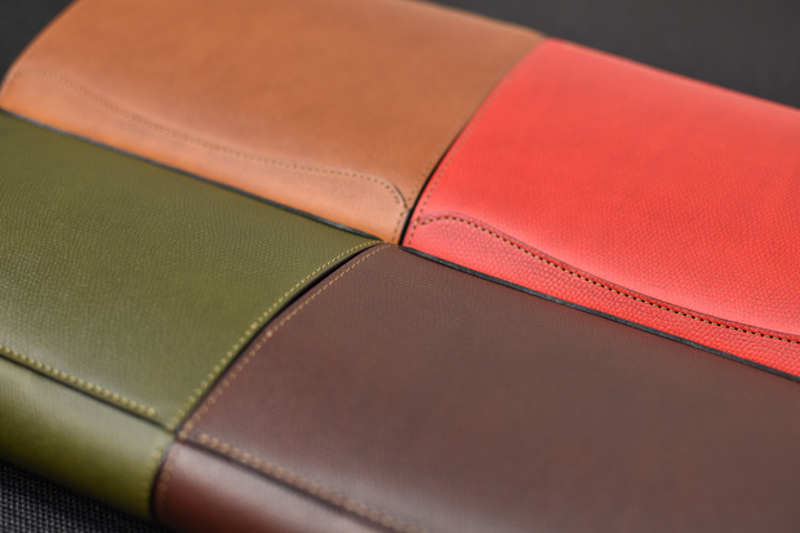 バダラッシ・カルロ社の「ミネルバボックス」や「ミネルバリスシオ」は同社を代表する素材です。 今回はスムースレザーであるこのミネルバリスシオに国内で型押し加工を施しました。