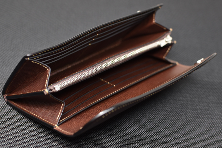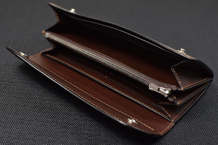 たっぷりとした容量と重厚感のある外観が印象的な大型長財布です。