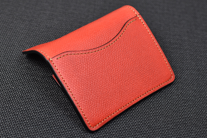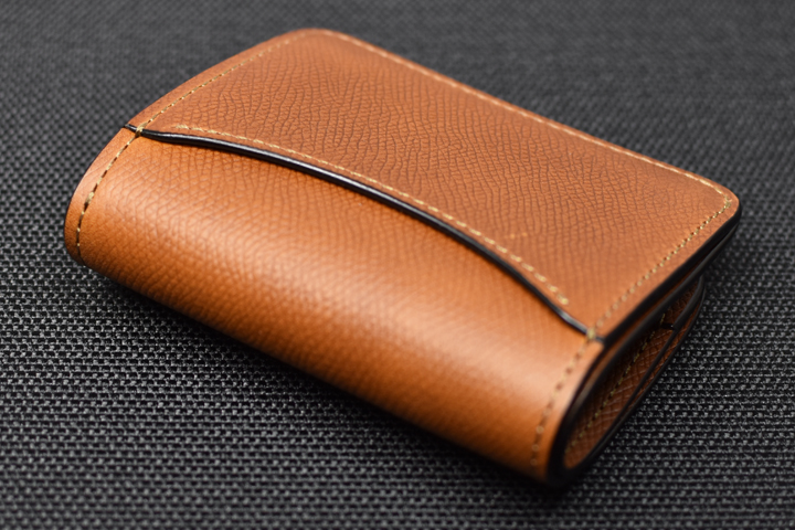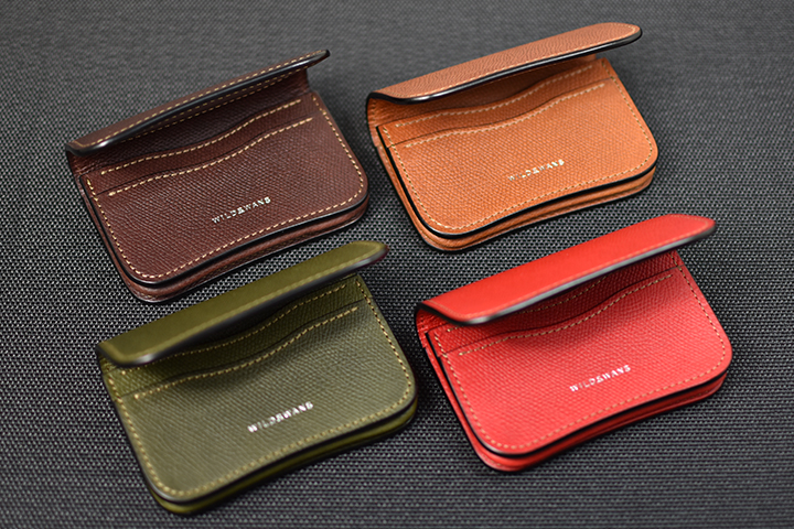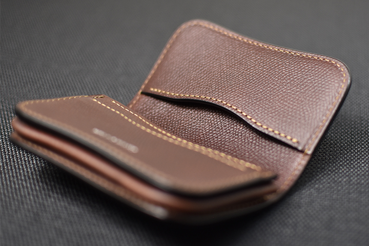 美しく優雅な曲線によるデザインと、重層のコバが印象的な名刺入れです。 収納量も豊富で、伸縮するマチ構造によって厚みを変えるという構造も特徴的なモデルです。