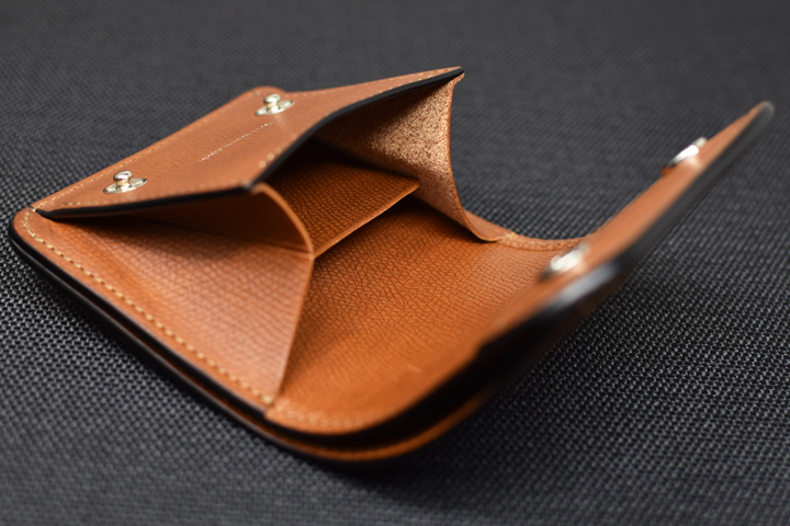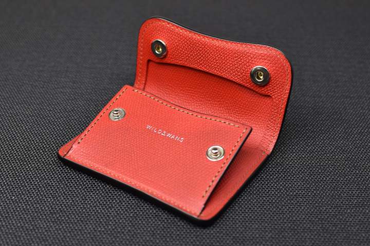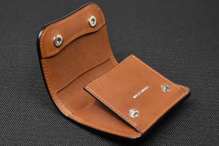 フラップを開くと内装はコインケースの作りになっています。