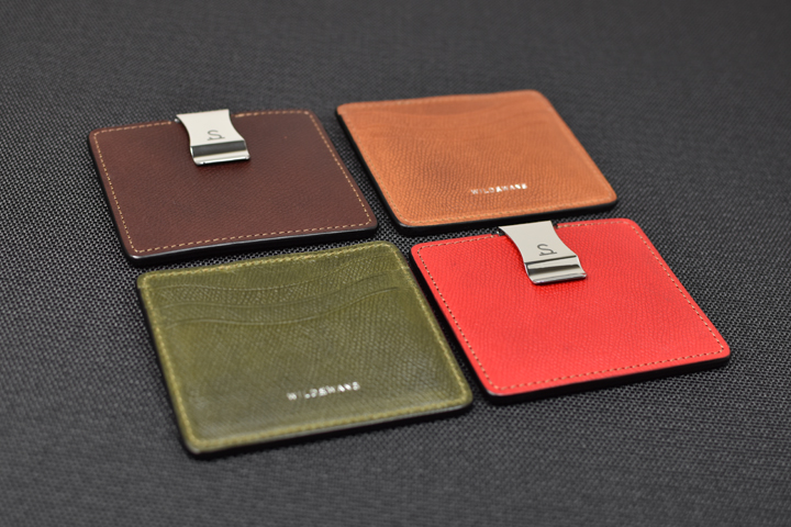 つい先日WILDSWANSのラインナップに加わったばかりのモデルで、ステンレススチール製のクリップ金具を装着したマネークリップウォレットです。