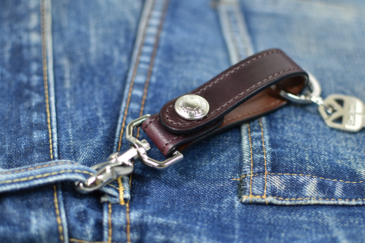 BRANCHはコバや縫製などは他のアイテムと同様の品質で仕上げられており、ナスカン金具やループ状の本体によって様々な場所に取り付けて持ち運ぶことが出来るキーホルダーです。