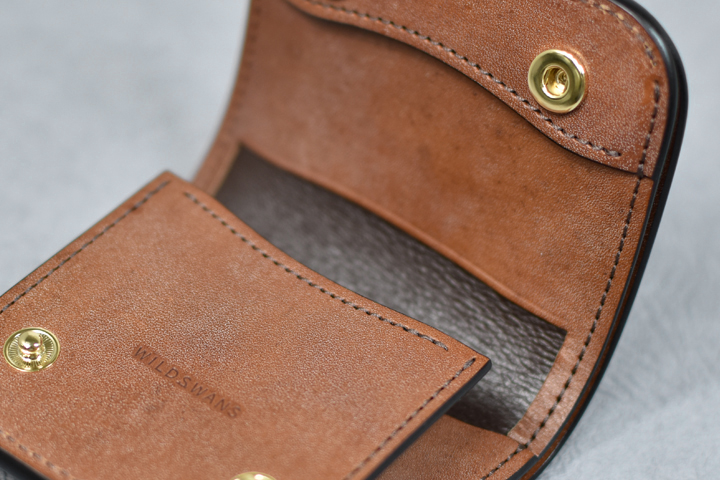外装に用いられたシェルコードバンは準定番品モデルやパターンオーダー用の素材として、また内装に用いたフルグレインブライドルレザーは定番モデルの素材としてどちらもWILDSWANSにはお馴染みの素材ですが、この2つを組み合わせたアイテムを製作するのは初めてのこととなります。