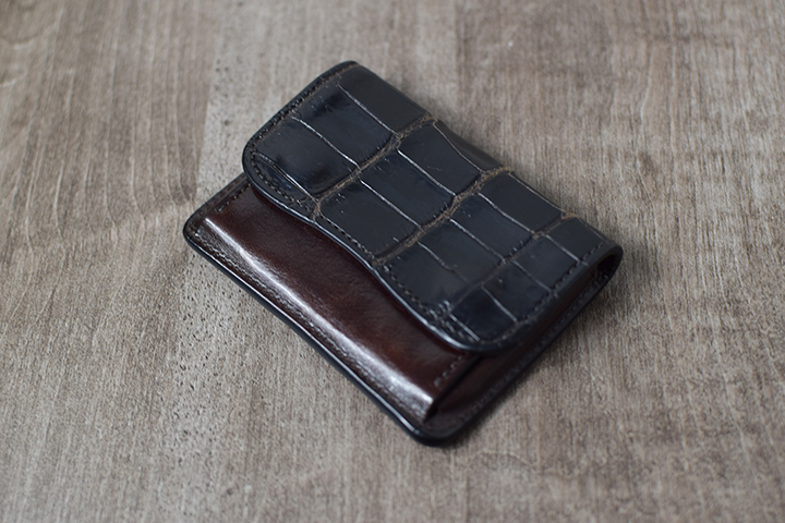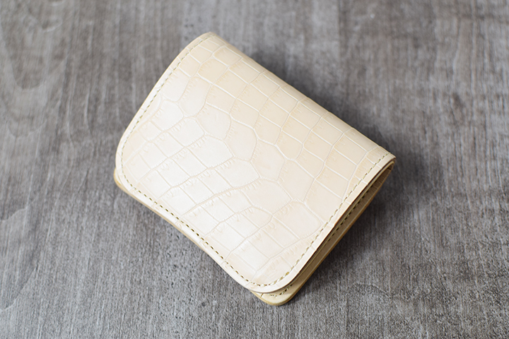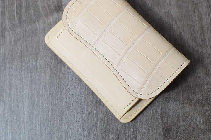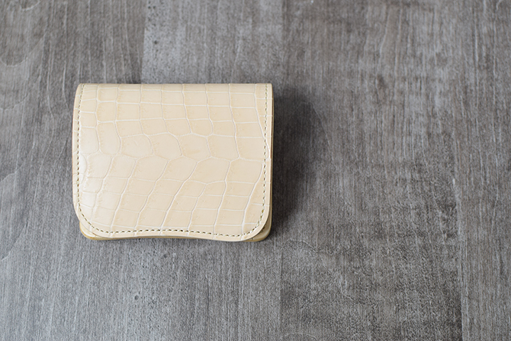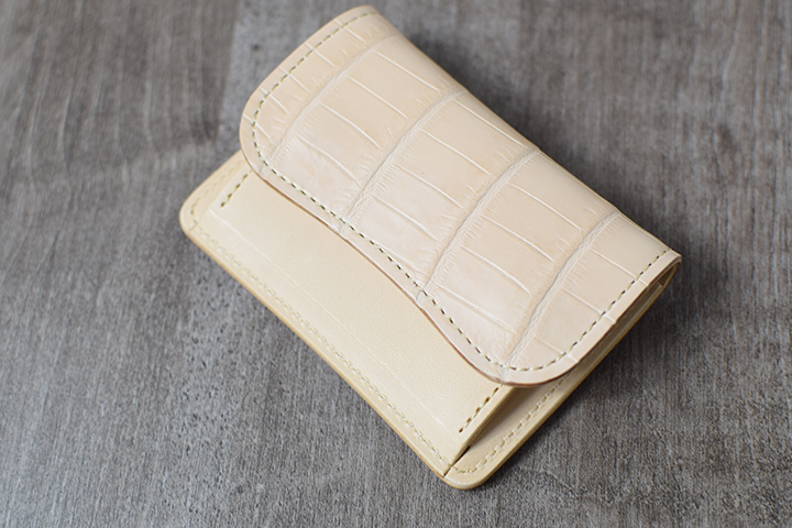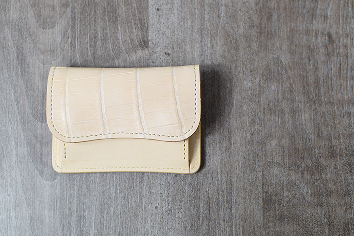 コンパクトなコインケースTONGUEは、ナチュラルカラーのクロコダイルの仕様となることでエイジングが楽しみな一品となりました。