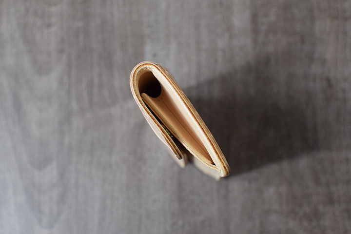 TONGUEより一回り大きな両マチ式のコインケースは、コインやカードもより余裕を持って収納できます。