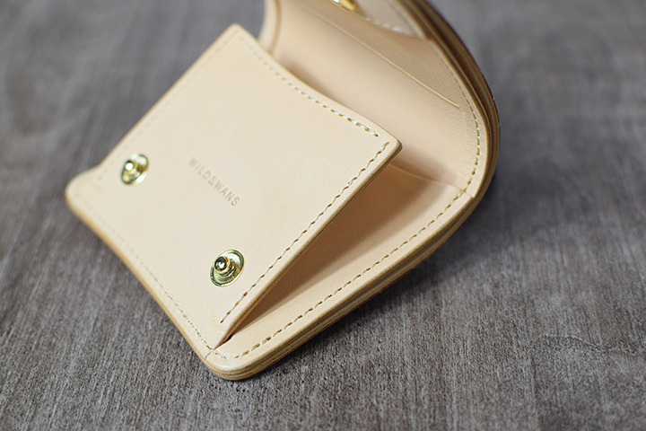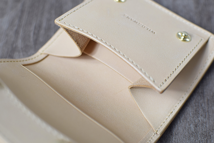 また、メインポケットの内部には「ベロパーツ」と名付けられたWILDSWANS特有の革の仕切りを備えています。こちらを利用することで手前にコイン、奥にカードというように異なる収納物が整然と収納することができます。