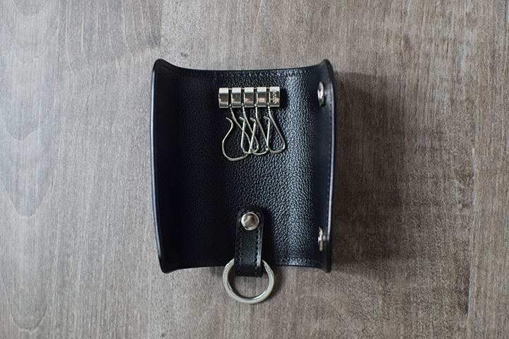 内装には4連のキーフックと取り外しが可能なキーリング付きパーツを備えています。この仕様により、複数のカギをまとめて収納することができます。