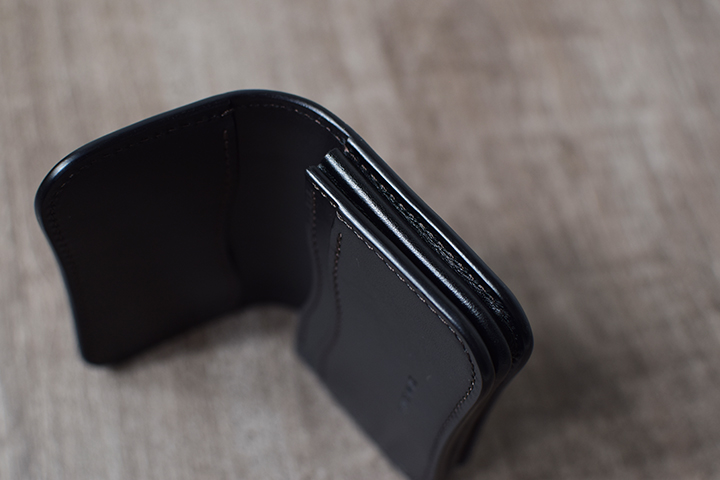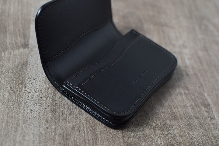 こちらも背面のカードポケットを備え、本体サイドには一万円札がちょうど入るサイズの札室も設けています。TONGUE同様、様々なシーンでお使い頂けるアイテムです。