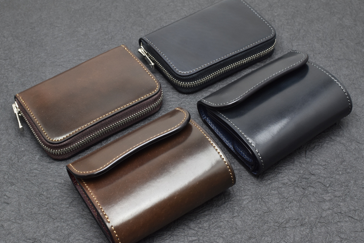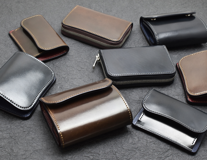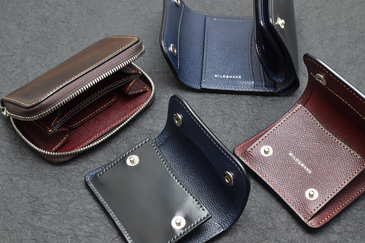 WILDSWANSの直営店限定アイテムとして、外装にシェルコードバン、内装には型押しを施したイングリッシュブライドルレザーを用いた革小物を発売致します。