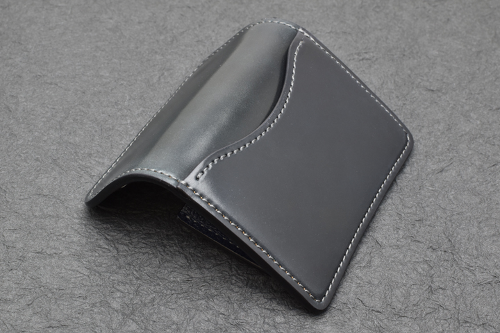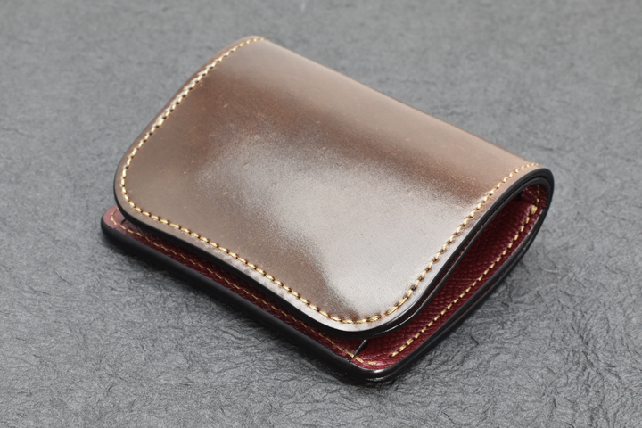 シェルコードバンは素材の風合いを殺さぬよう皮革表面の仕上げを最小限にとどめているため、その分皮革一枚一枚に生じる色味の差や小傷、色ムラなどが生じますが、ご使用頂くにつれて進む経年変化は数多の皮革の中でも特に美しいとされており、良く磨かれた金属のような光沢は非常に印象的です。