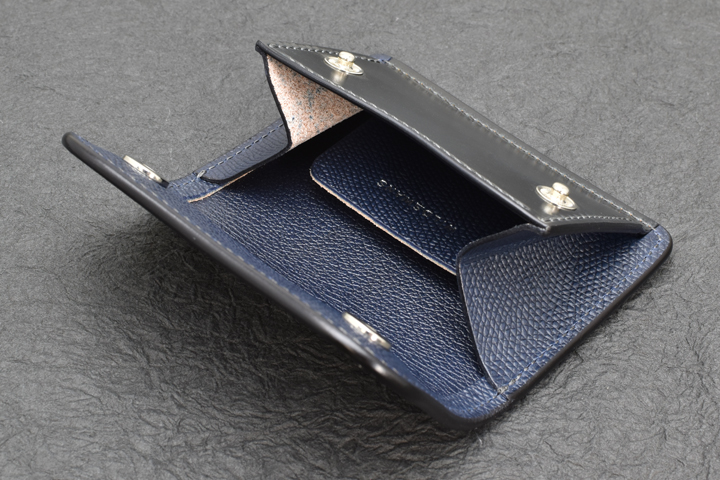 PALMのコインケースは先程ご紹介致しましたTONGUEと同じように左右にマチの付いた構造で、手前に大きく開くことで硬貨の出し入れも容易に行うことが出来ます。