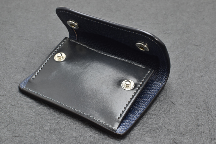 コインケース内部には仕切パーツが取り付けられているため、カード類をパーツ裏に差し込んで硬貨と分けて収納することが出来ます。