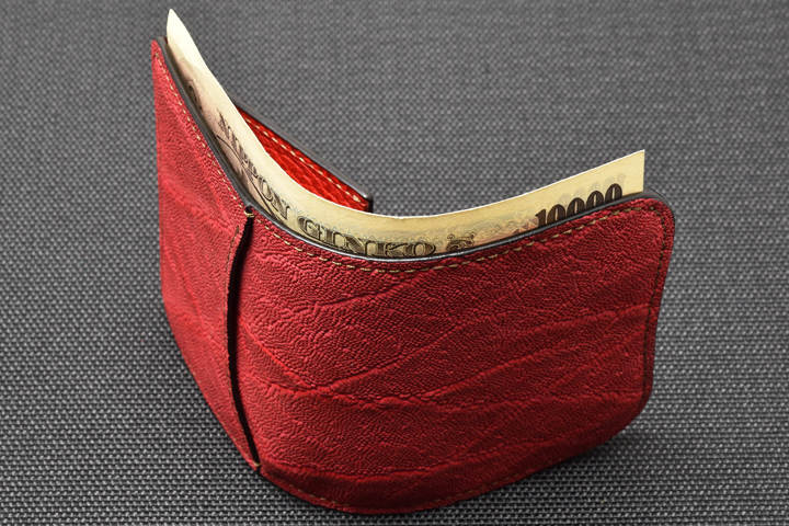 ミニ財布ながらも少し余裕を持たせたサイズ設計になっておりますので、一万円札の出し入れもスムーズに行っていただけます。