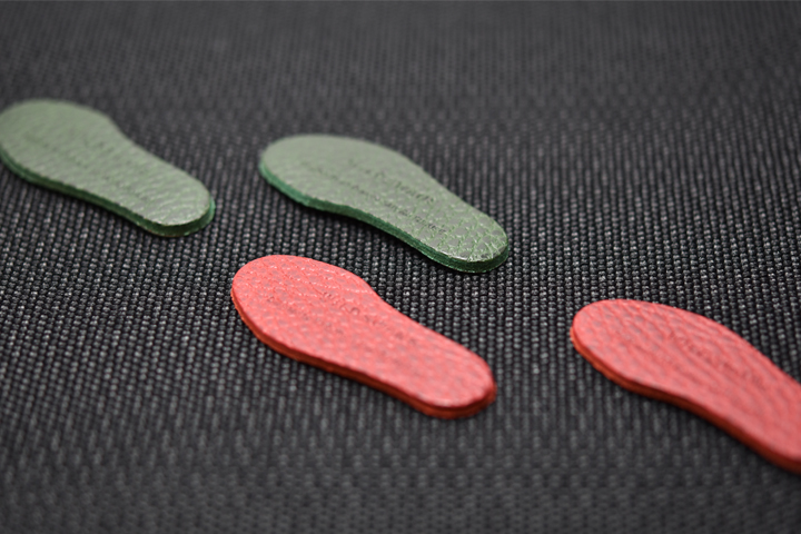 kf-003は「Walkers」というシリーズに属するモデルのため、足形を模した革製ステッカーが付属します。
