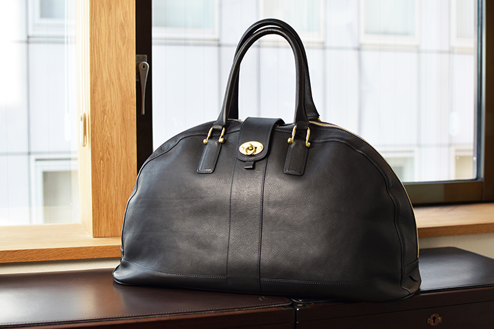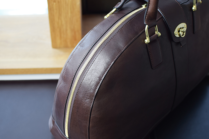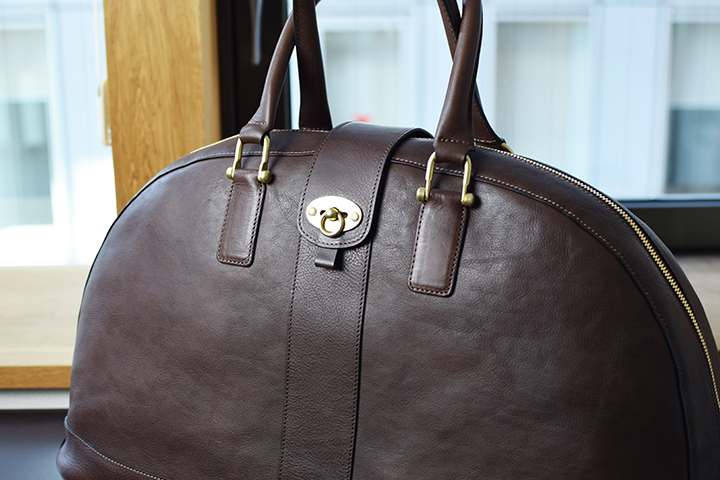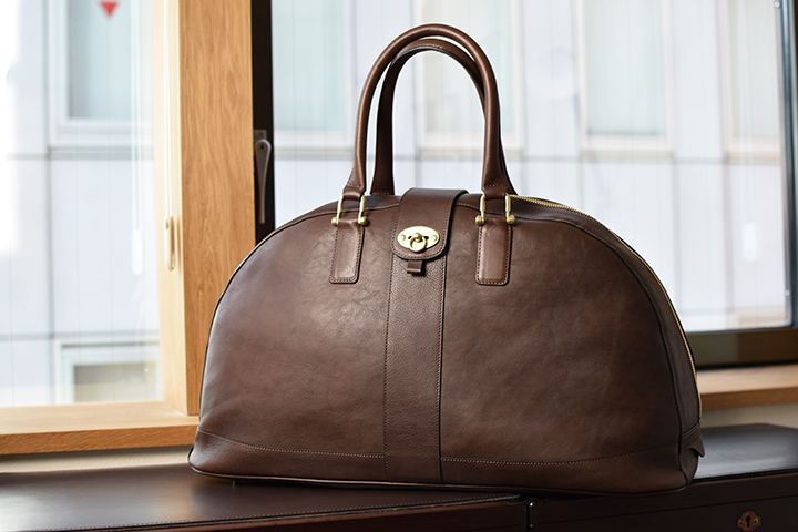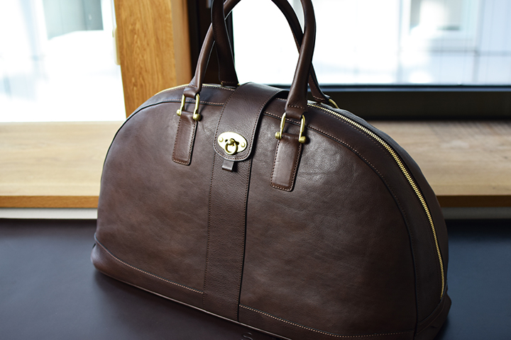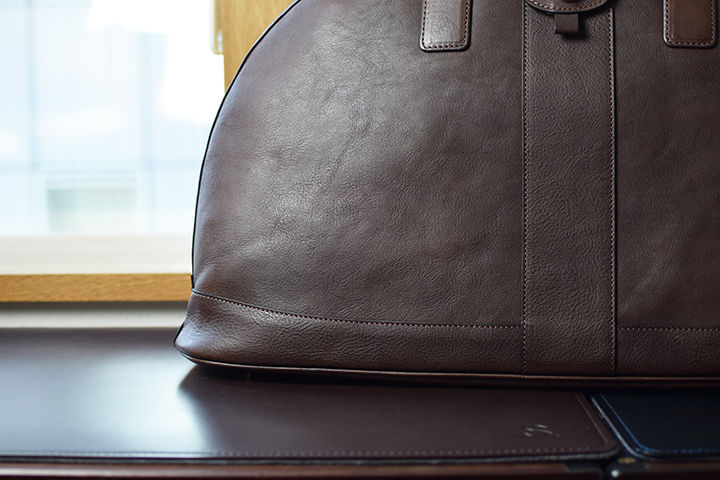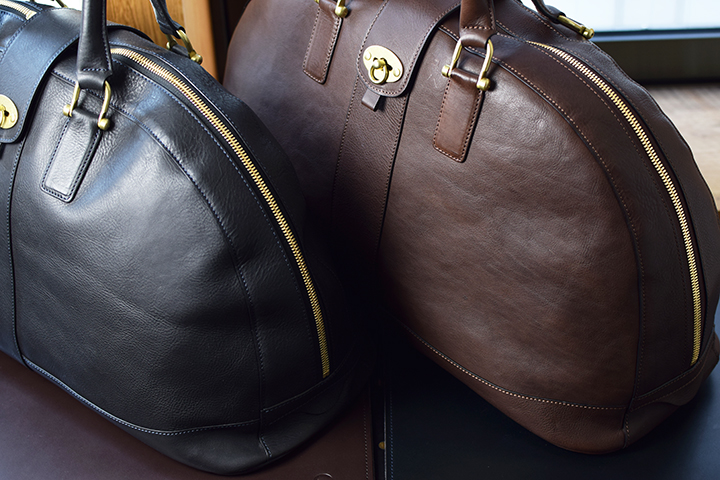 60th.BOSTONは、底面から半円を描くような美しいカーブにより全体のディテールを構成しています。革製のバッグでドスンとした頼もしい存在感がありますが、重量は約1.65㎏と見た目に比べて軽く仕上げています。外装にポケットは装備していませんが、こうした余計なパーツを排除することで、大きなサイズでありながらもシンプルですっきりとした存在感の高いバッグに仕上げています。昨今は、ナイロン等素材の進化もあり、60th.BOSTONのような大きさの革製ボストンは、非常に珍しい存在となりました。