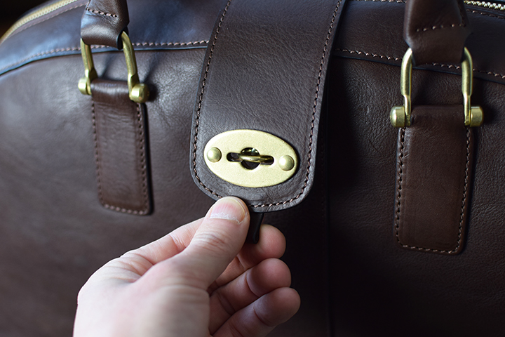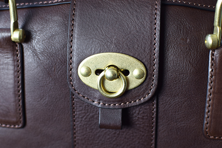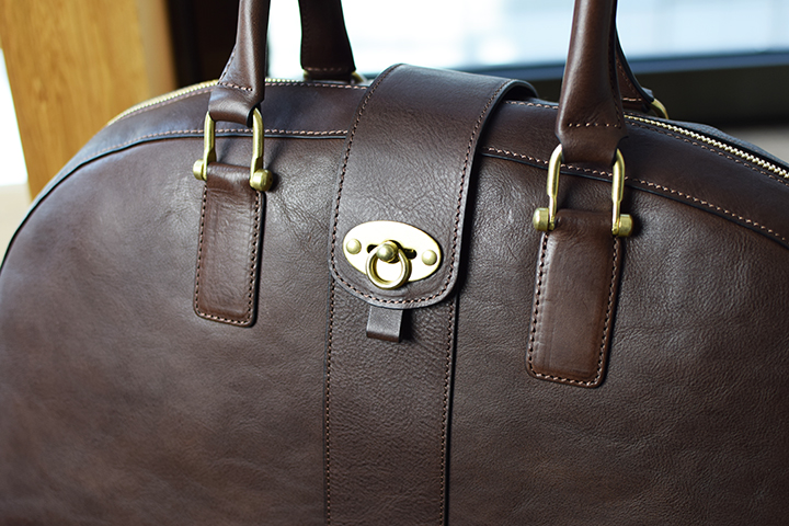 60th.BOSTONのもう一つ印象的な部分としては、金具使いが挙げられます。金具はゴールドカラーの真鍮が用いられ、ボストンバッグそのものをクラシカルな雰囲気に仕立てています。