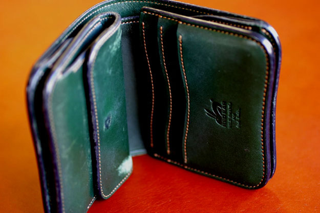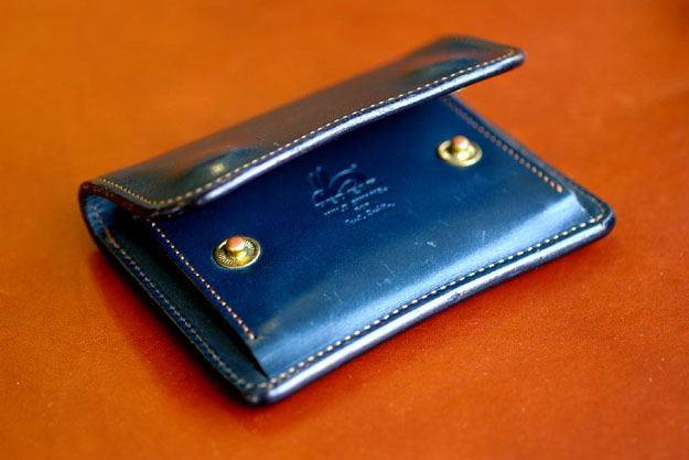 次々と見せていただいた革小物はどれも使い込まれて風合いを増し、存在感を発揮していました。それぞれが大事に使われていたのだろうな、と素直に感じることが出来るエイジングの仕方でしたが、Oさんは「普通に使っていただけです」と笑っていました。