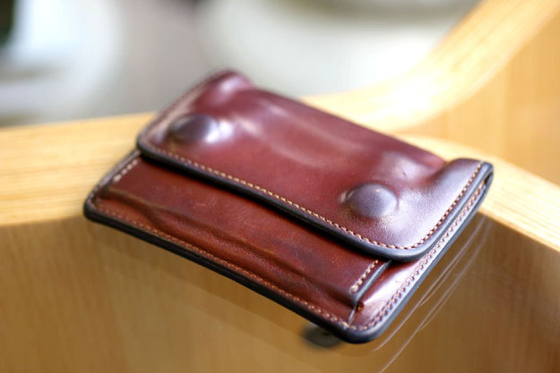 この新しいお財布には、再び長い年月をかけてOさんの年輪が刻まれていくのと同時に、作り手の年輪も新たに刻まれていきます。これから10年位先に「昔はこういうのを作ったな~」と、作り手同士で言い合ってるかも知れません。