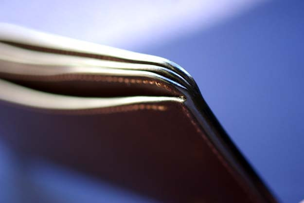 WILDSWANSらしく重層的なコバもキッチリと磨き込んであります。本体の印象はとてもスリムなのですが、革自体にある程度の厚みを持たせてありますので、しっかりとした張りと心地良い重量感があり、薄くても頼り無いということはありません。